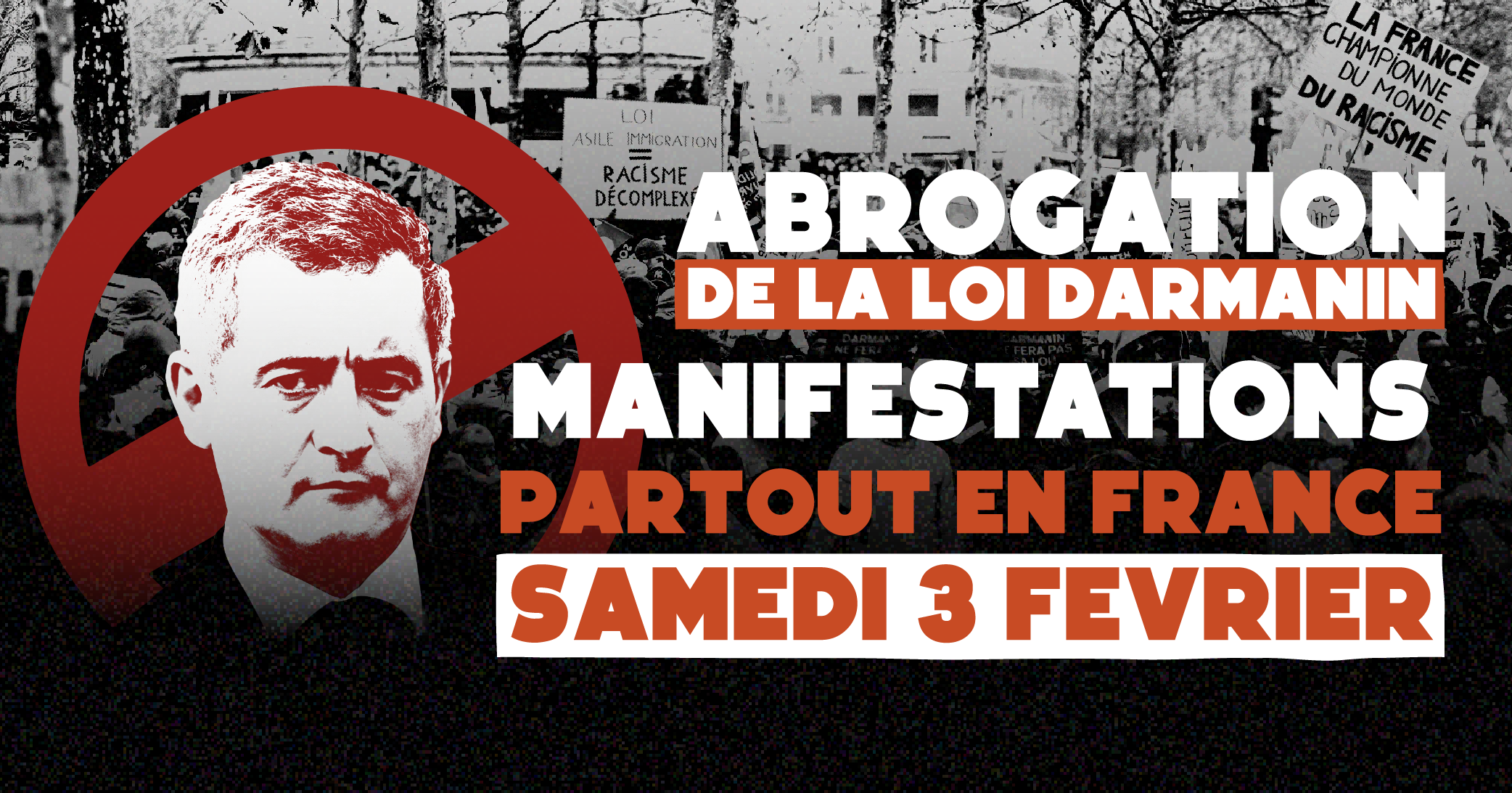 À manifester massivement sur tout le territoire le samedi 3 février, pour que cette loi soit abrogée, combattre le racisme, la xénophobie et défendre une politique migratoire d'accueil et de solidarité.
