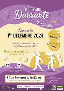 Après une première édition pétillante en octobre, le Centre Culturel et Social Rotterdam réitère son après-midi dansante le dimanche 1er décembre 2024, pour deux fois plus de plaisir ! De 14h à 18h, tous les amoureux de la musique sont les bienvenus à la salle polyvalente du Bon Pasteur, au 12 boulevard Jean-Sébastien Bach à Strasbourg.