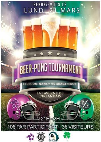 On se retrouve le 21 mars pour un affrontement de bière-pong au sommet, entre l’UFR maths info et Telecom Nancy !