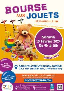 Après le succès de la Bourse aux Jouets et Puériculture des années précédentes, le Centre Culturel et Social Rotterdam réitère cet événement le samedi 10 février 2024, de 9h à 15h. L’événement se déroulera à la Salle Polyvalente du Bon Pasteur, 12 Bd Jean Sébastien Bach, à Strasbourg.