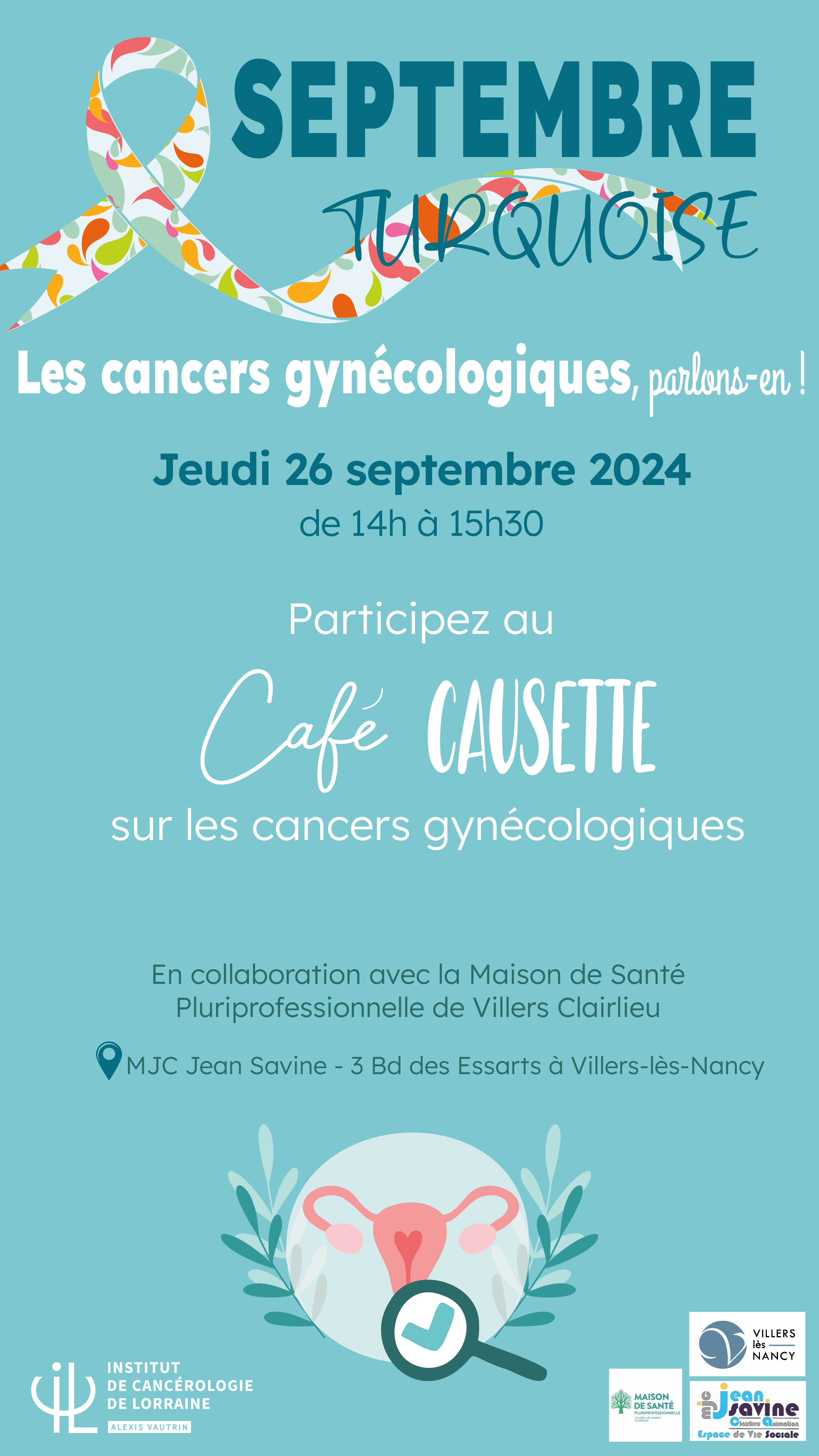 Afin de les faire connaître, informer sur leurs facteurs de risque parmi lesquels on retrouve les infections par le papillomavirus humain (HPV) ou encore la consommation de tabac, informer sur leurs symptômes, leur prise en charge, libérer la parole sur ces cancers, informer sur le dépistage du cancer du col de l’utérus, l’Institut de Cancérologie de Lorraine (ICL) et la Maison de Santé Pluriprofessionnelle de Villers-lès-Nancy Clairlieu proposent un café-causette sur les cancers gynécologiques à la MJC Jean Savine à Villers-lès-Nancy.