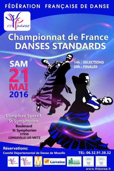 Le Comité Départemental de Danse de Moselle, sous l’égide de la Fédération Française de Danse, organise le 21 mai 2016 le championnat de France Danses Standards.