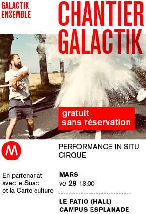 En écho au spectacle de cirque Optraken programmé au Maillon du 26 au 30 mars, cinq acrobates du collectif Galactik Ensemble font un détour sur le campus, pour une performance créée spécialement pour ce lieu.