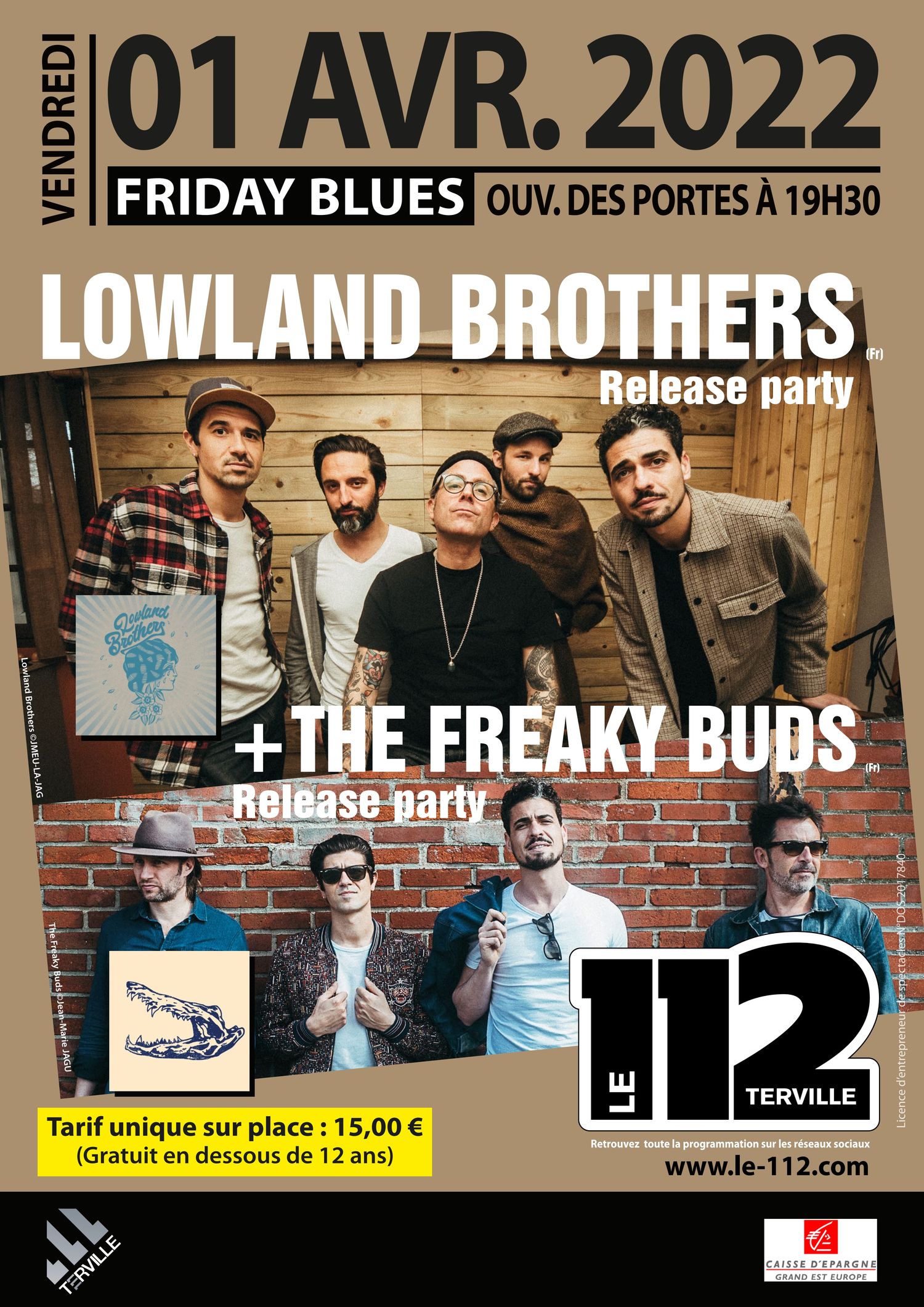 C’est lors d’un Friday Blues que nous accueillerons deux groupes, Lowland Brothers + The Freaky Buds, le vendredi 1er avril 2022 (ouv. des portes à 19h30).