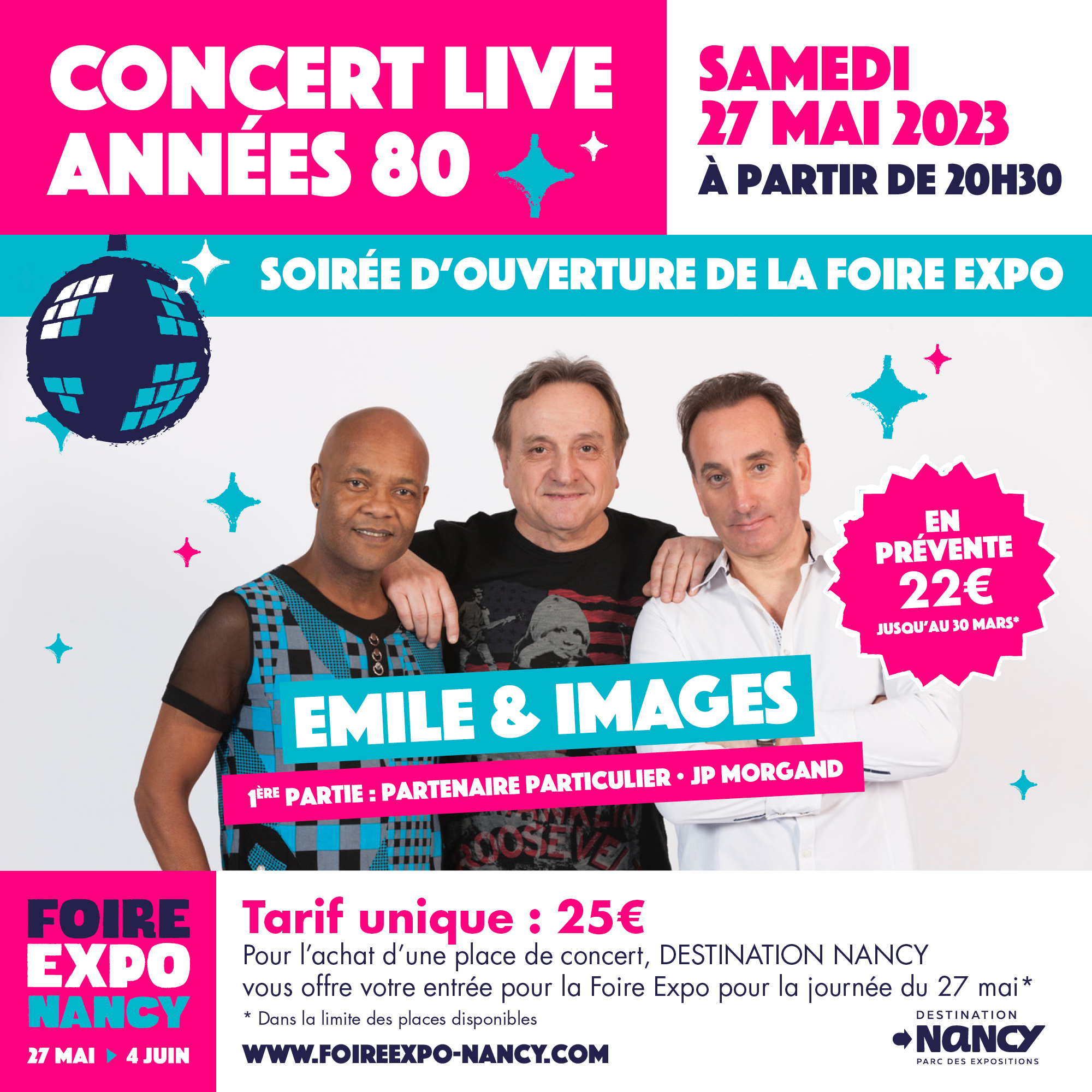 A l’occasion de la soirée d'ouverture, DESTINATION NANCY vous propose un Plateau Années 80 pour un concert live le samedi 27 mai dès 20h30 avec Émile & Images !