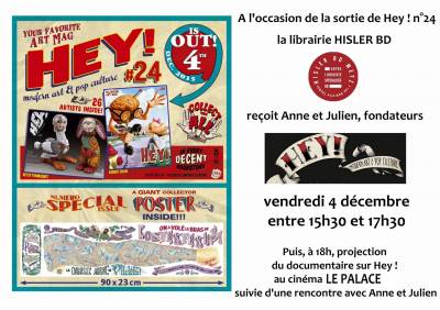 Anne et Julien, fondateurs de la revue "Hey" publiée chez Ankama, viendront également présenter et dédicacer les exemplaires de leurs pépites ce vendredi entre 15h30 et 17h30, à la librairie HISLER BD.
