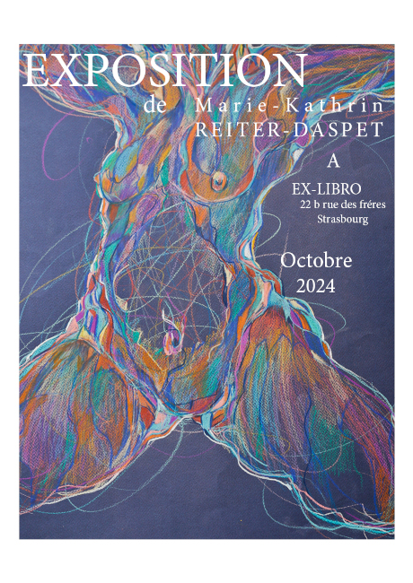 Exposition de dessins de nus et de portraits de Marie-Kathrin Reiter-Daspet à la librairie Ex Libro 22b rue des frères, Strasbourg du 1er au 31 octobre. Ouvert tous les jours de 13h à 19h sauf le dimanche. De l’échange muet avec le modèle émerge un jeu de couleurs subtiles avec des lignes dansantes pour capter un instant de vie.