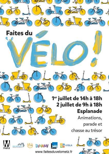 Nous organisons prochainement LA FAITES DU VELO ! L’évènement se tiendra le 1er et 2 juillet sur l’esplanade de Metz. Un weekend qui sera rythmé par de nombreuses animations autour du vélo, mais aussi des stands qui permettront à nos différents partenaires de présenter leurs activités.