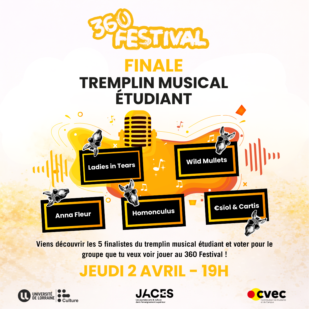 La finale du Tremplin étudiant du 360 Festival débarque à la Maison de l’Étudiant – Lorraine Nord sur l’île du Saulcy à Metz !