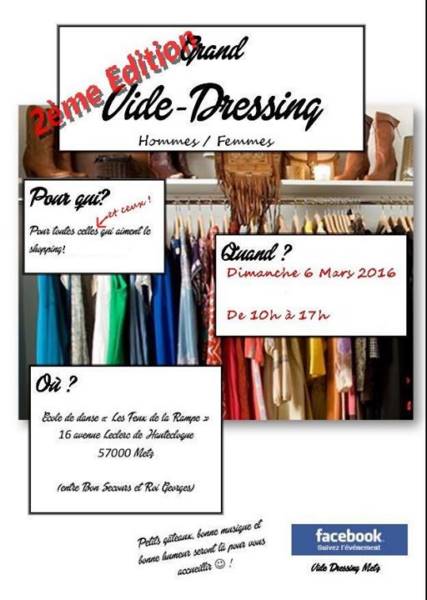 L’école de danse Les Feux de la Rampe située au 16 avenue Leclerc de Hautecloque à Metz, vous ouvre de nouveau ses portes à l’occasion de la Deuxième Edition du Grand Vide Dressing qui aura lieu le Dimanche 6 Mars 2016 à partir de 10h!