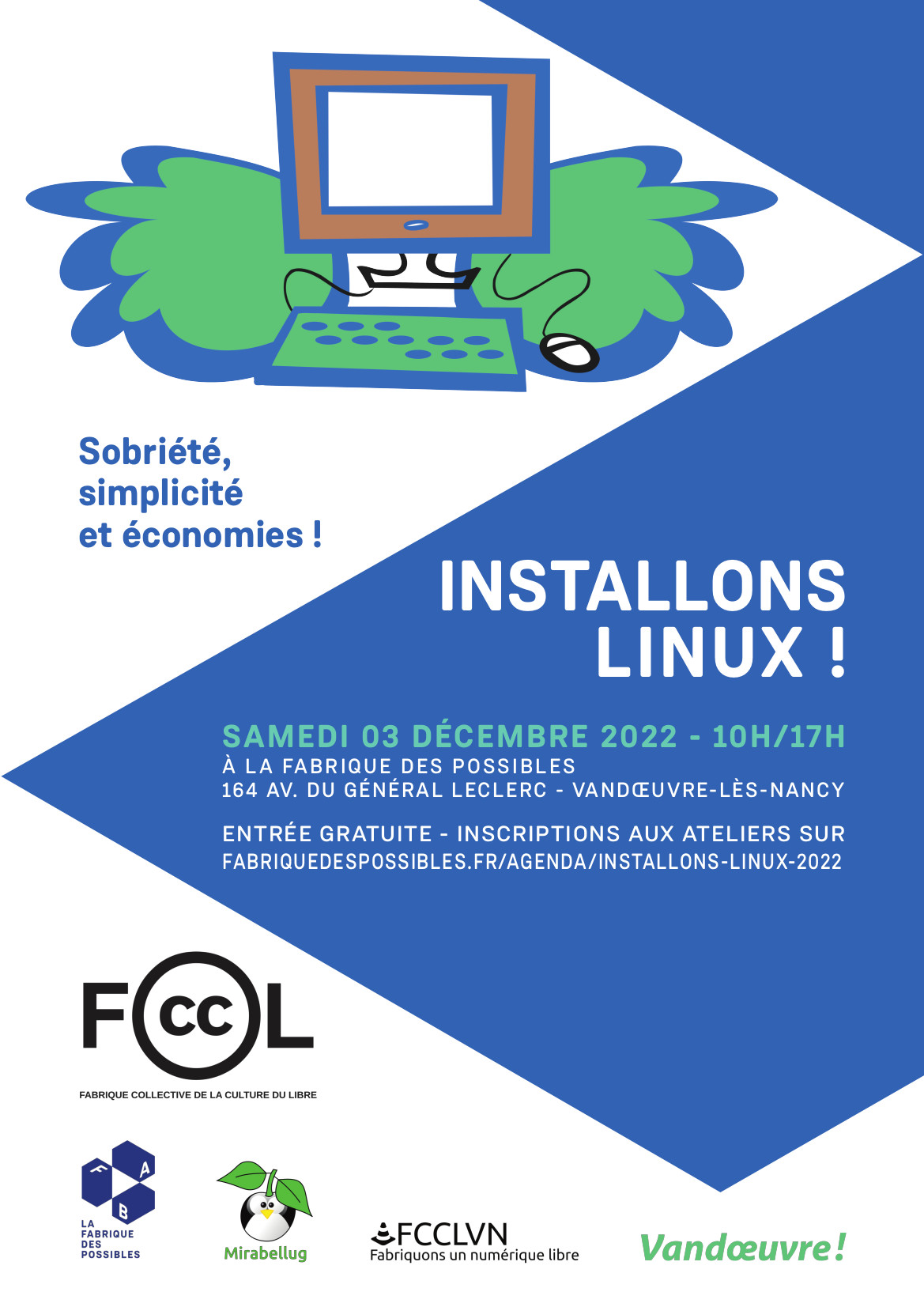 Avec Linux installé sur mon ordi, en route pour la sobriété, la simplicité et les économies ! Linux est une alternative moderne et complète à Windows, utilisée dans le monde entier. Vous retrouverez tous les outils dont vous avez besoin (navigateur internet, courriel, traitement de texte, tableur, travail de l’image, etc).