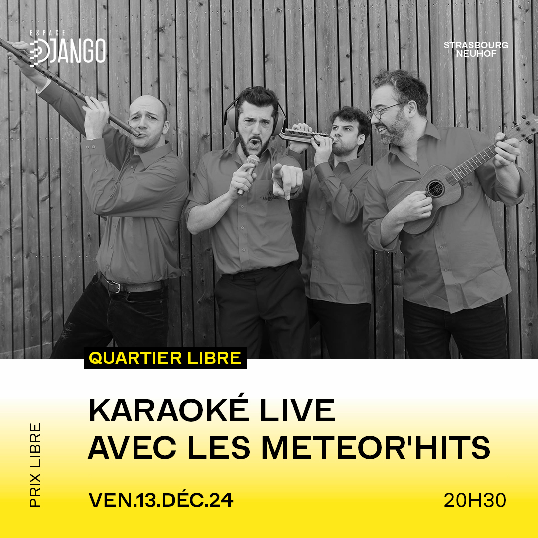 Si vous ne l’avez toujours pas vu, venez découvrir l’univers du karaoké live des Meteor’Hits ! Un orchestre qui vous propulse sur le devant de la scène et vous transforme en vedette de la chanson. Faîtes votre choix parmi une liste de plus de 200 titres et prenez le micro ! L’occasion de révéler votre talent ailleurs que sous la douche, sous les mythiques projecteurs de Django !