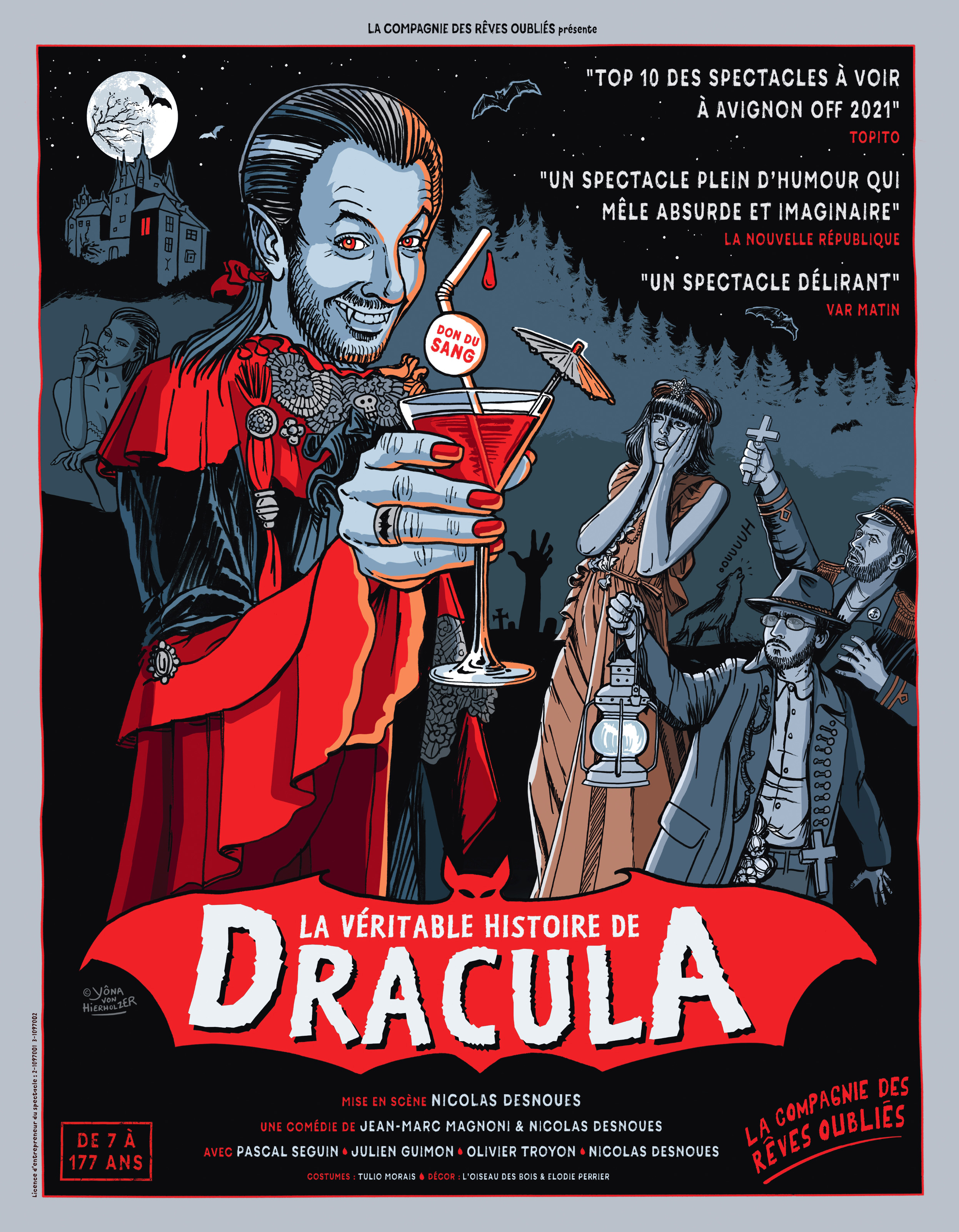« À travers une galerie de personnages hauts en couleur et loufoques, toutes les formes du comique (de situation, de répétition, de langage, etc.) et une mise en scène bien rythmée sont mises au service d’un spectacle plein d’humour et délirant, qui mêle absurde et imaginaire. Bref, une comédie « sang pour sang » pa- rodique, du roman de l’écrivain Bram Stoker qui fait rire et sur- prend le public »
