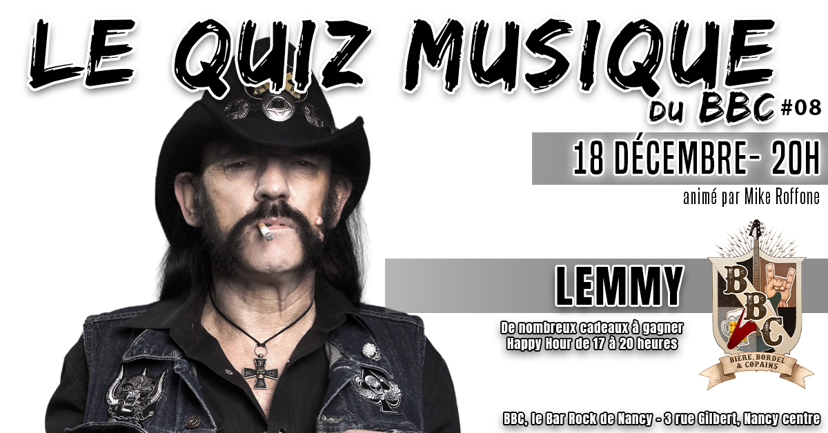 ⚡ Jeudi 18 décembre à 20h, le BBC rend hommage à l’homme qui a transformé le Jack Daniel’s en carburant officiel du rock’n’roll. Lemmy, c’est une moustache mythique, une basse qui sonnait comme un tank et une longévité qu’aucun médecin n’aurait osé parier. Prépare-toi à au moins 15 questions sur une légende aussi indestructible que son chapeau.