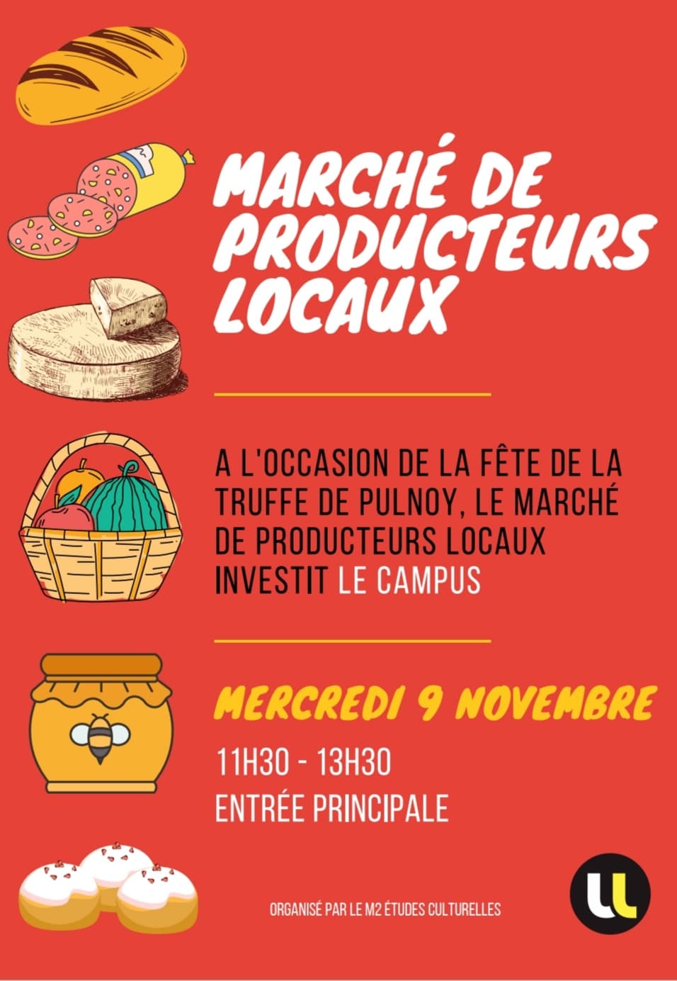 L'association Truffe 54 et les étudiants de M2 Études Culturelles vous invitent au marché gourmand organisé sur le Campus Lettres et Sciences Humaines de Nancy, dans la continuité de la fête de la truffe qui se déroulera du 12 au 13 novembre 2022 à Pulnoy.