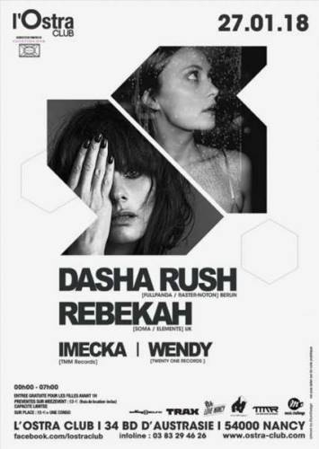 Nous démarrons 2018 sur les chapeaux de roues puisque nous recevons le 27 janvier : REBEKAH l’anglaise férue de techno puissante et la très respectée productrice russe DASHA RUSH