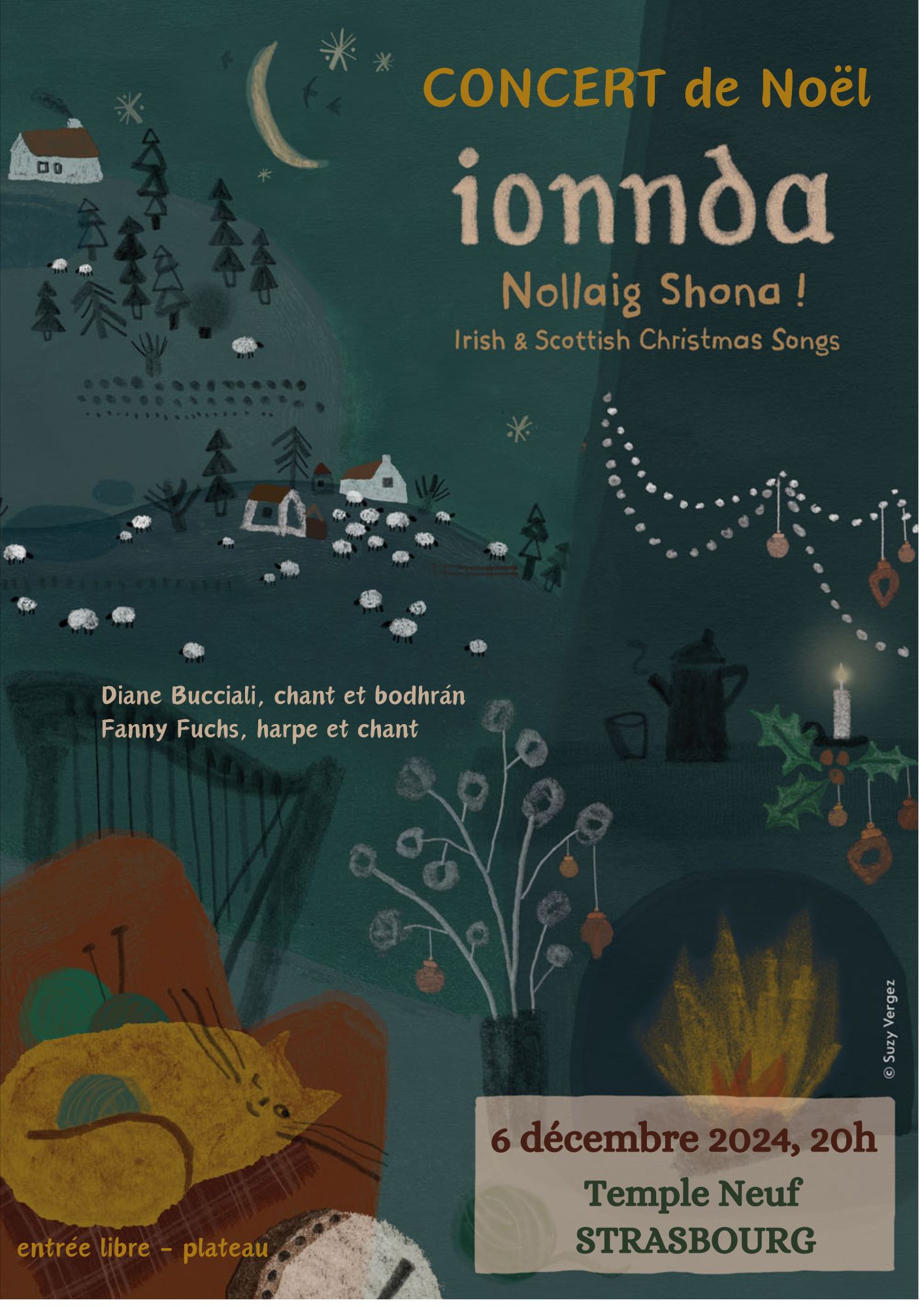 Le duo Ionnda réunit la chanteuse Diane Bucciali et la harpiste Fanny Fuchs. Par leurs voix et leurs instruments celtiques, les musiciennes apporteront au coin des cheminées alsaciennes les airs traditionnels de Noël venus d'Irlande, d'Ecosse et d'Angleterre.