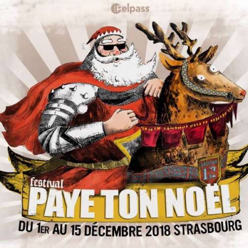 Le festival Paye Ton Noël revient du 1er au 15 décembre 2018 à Strasbourg ! Un renne en guise de cheval, une armure à la place du manteau en fourrure, le Père Noël remonte le temps pour aller festoyer comme il se doit la fin d’année... au pays des chevaliers. Venez découvrir l’épopée d’un chevalier équivoque au royaume des marabouteurs de sapin !