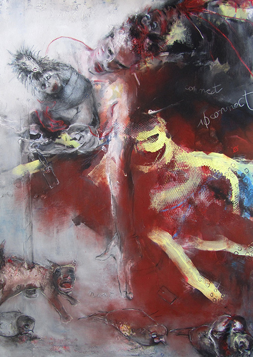 La zone d’humanité s’engouffre dans ses œuvres selon une certaine violence, peu contenue et débordante pour témoigner avec esthétisme d’une société où la survie de l’homme se fait parfois oublier.