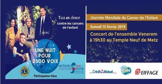 Enfants Cancers Santé Grand Est organise le 15 février à Metz un concert avec VENEREM au profit de "2500 Voix".
