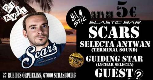 le 21 avril SCARS + SELECTA ANTWAN ( TERMINAL SOUND ) + Mael + GUIDING STAR SOUND à l’élastic bar de Strasbourg