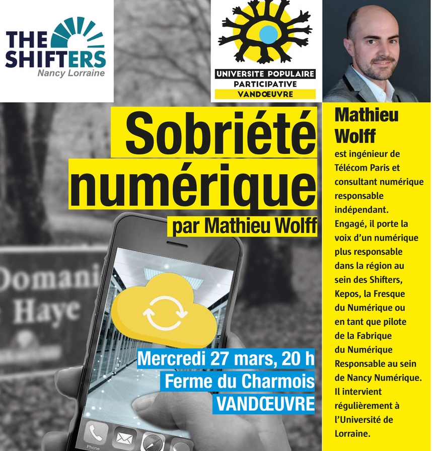Mathieu Wolf, ingénieur de Télécom Paris et consultant indépendant très impliqué sur le territoire nancéien, présentera concrètement les impacts environnementaux et sociaux du numérique et abordera les leviers d’action pour rendre le numérique plus durable.