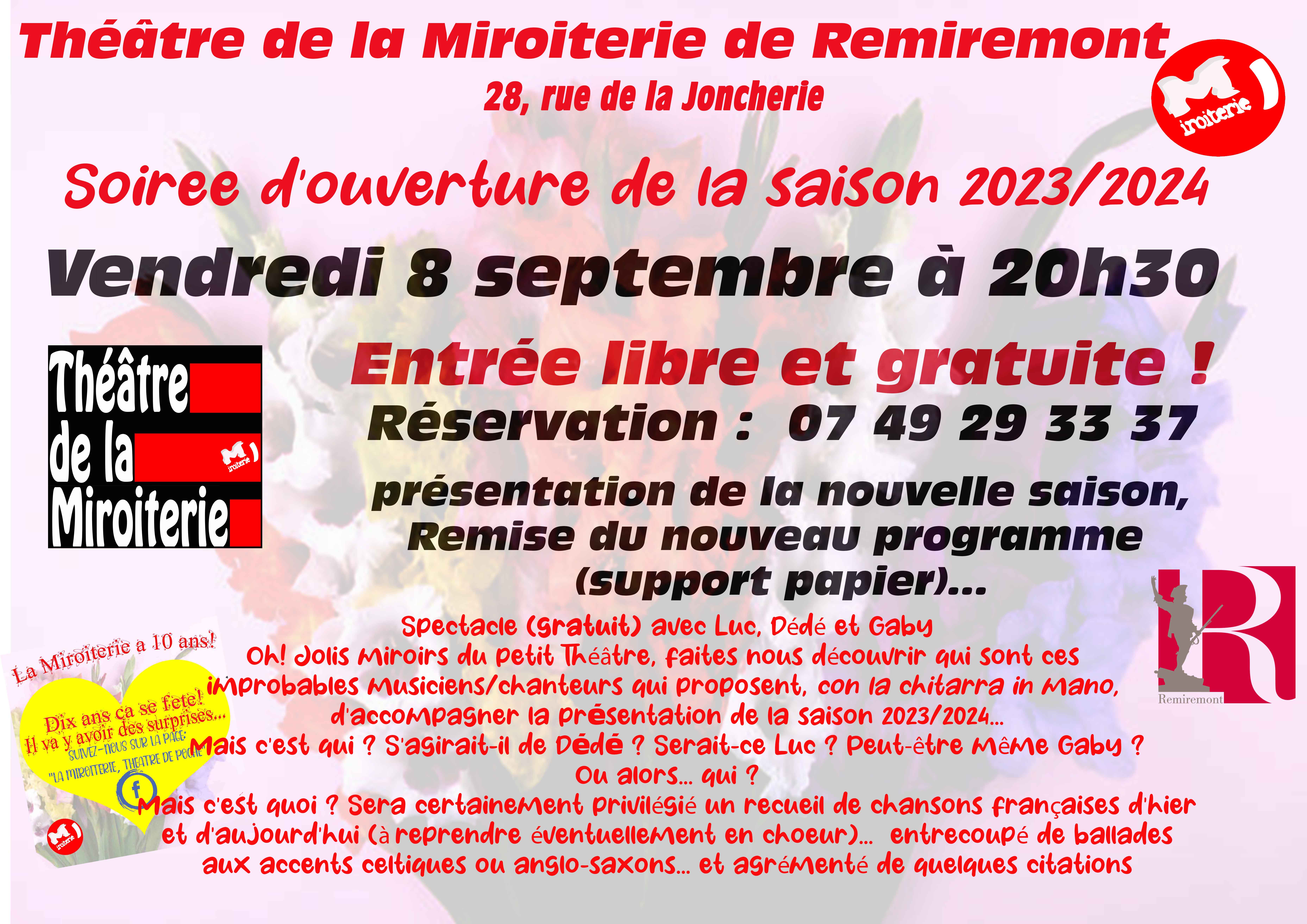 Soirée d'ouverture du Théâtre de la Miroiterie à Remiremont. Présentation , musique, remise du programme de la saison, etc, ...