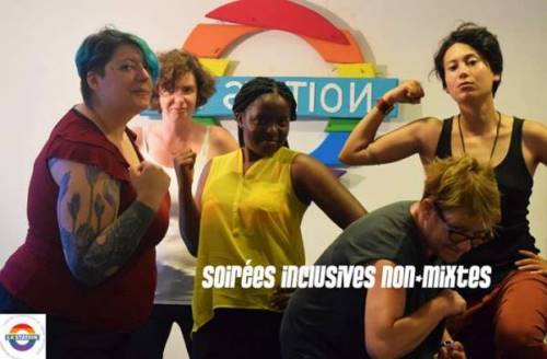 Dans un espace en non mixité féminine inclusive (ouvert à tou.te.s, les nanas cis et trans, mais aussi les personnes non-binaires, genderfluid, agenre etc. et indépendamment de votre orientation sexuelle/affective...), vous êtes tou.te.s les bienvenu.e.s !