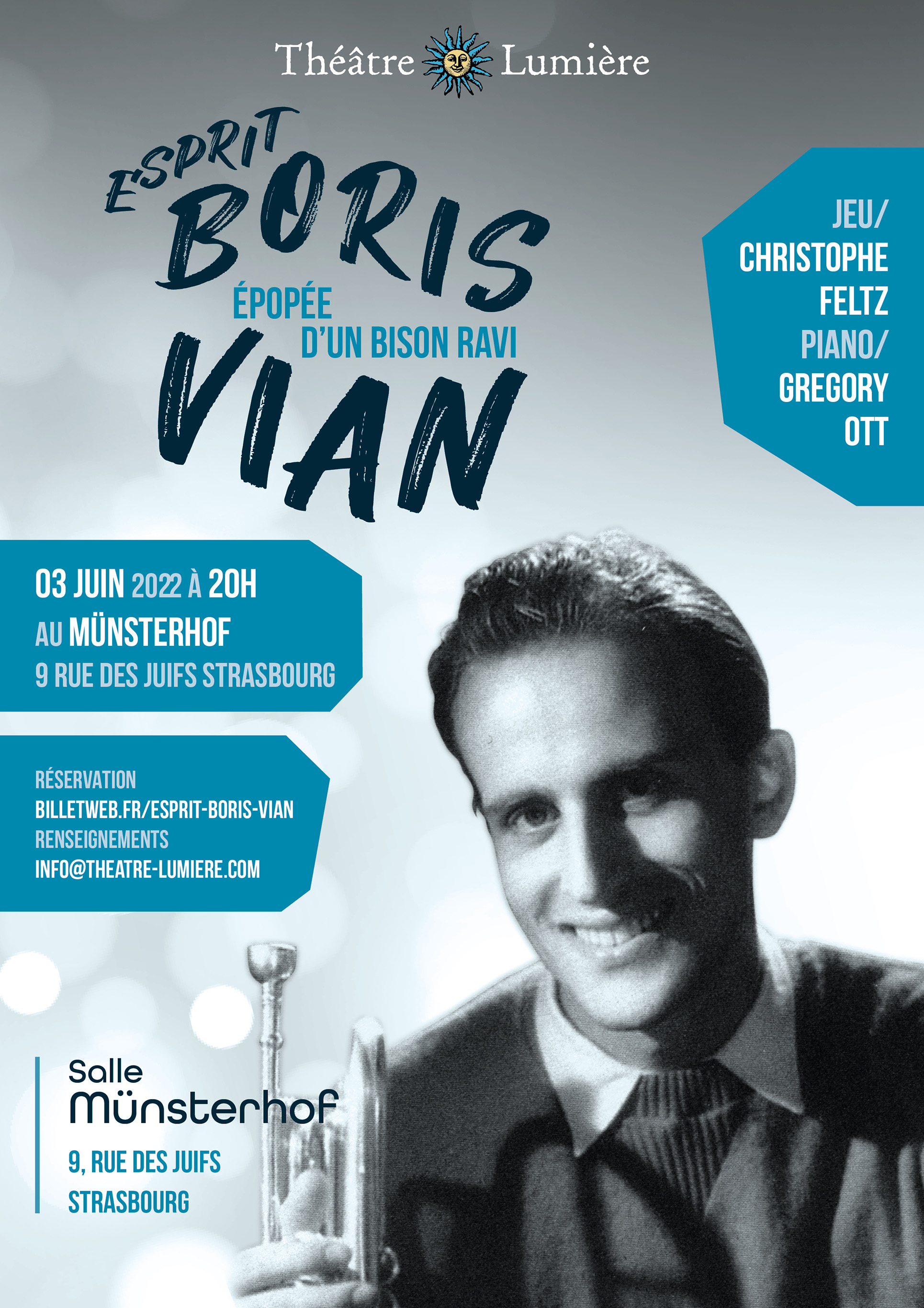 Depuis 30 ans, la Compagnie Théâtre Lumière fouille et interroge l’œuvre extraordinaire de l’un des très grands esprits artistiques et poétiques du XXe siècle, Boris Vian. Notre « Bison ravi », comme il aimait à se faire appeler (anagramme de Boris Vian) est un artiste original et unique (auteur, poète, traducteur, chanteur, musicien…) qui a entre autre fait découvrir en France ses amis « rois du jazz » Duke Ellington, Charlie Parker, Miles Davis pour ne citer que les plus célèbres.