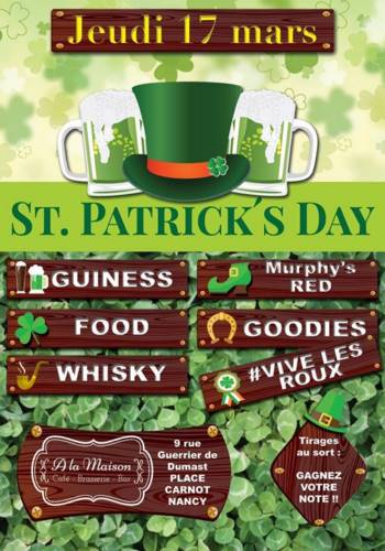 Bonne nouvelle les amis, Le bar A.L.M vous organise une grande soirée pour la St Patrick. Pour l’occasion nous nous mettons aux couleurs de l’Irlande, de nombreux goodies sont à gagner afin de faire de vous de vrais lutins verts.