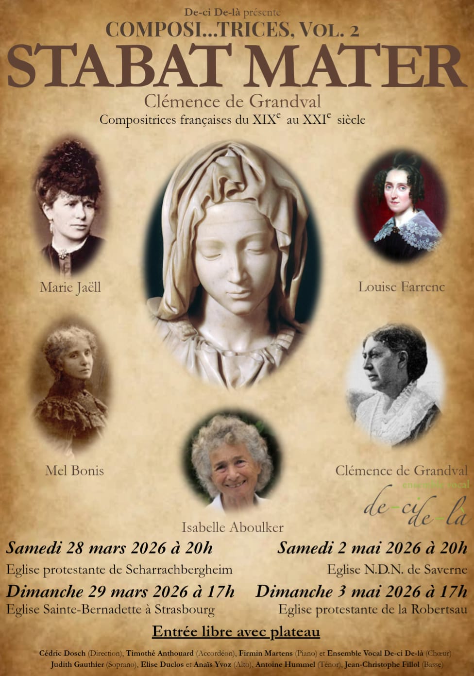 Spécifiquement, le chœur se concentrera sur une œuvre redécouverte depuis peu : le Stabat Mater de Clémence de Grandval (1870).
