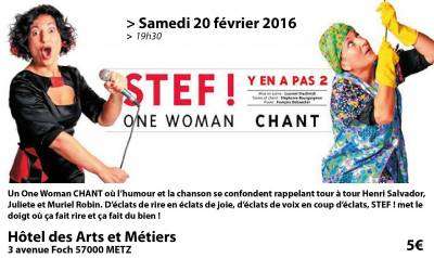 D’éclats de rire, en éclats de joie, d’éclats de voix en coup d’éclats, Stef ! met le doigt là où ça fait rire et ça fait du bien. Nul doute qu’à votre tour, Stef ! saura vous séduire !