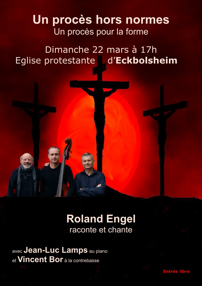 Roland Engel raconte et chante, accompagné au piano par Jean-Luc Lamps et à la contrebasse par Vincent Bor.