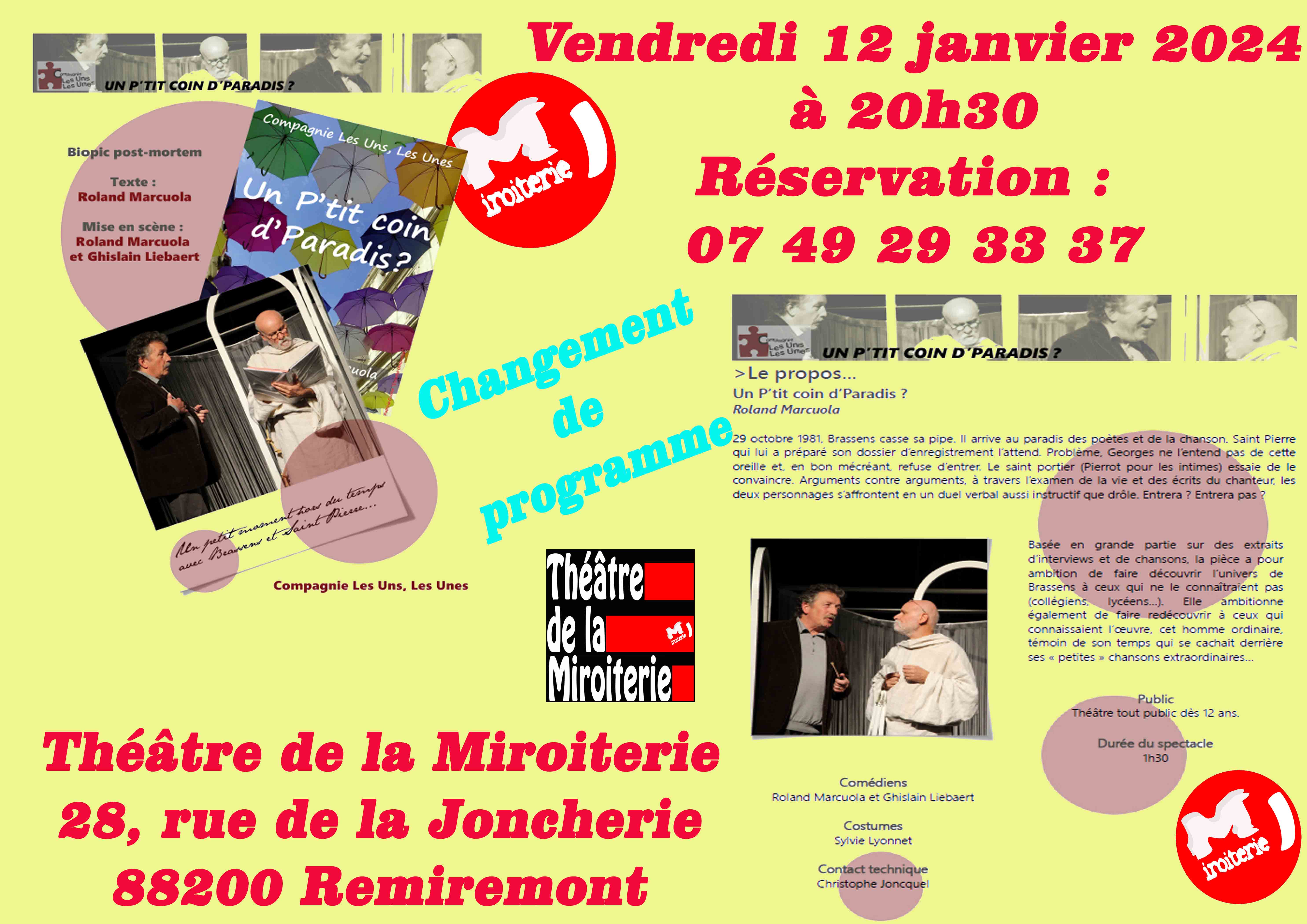 Depuis novembre 2013, l’association CTPS fait vivre le Théâtre de la Miroiterie, un lieu de création et de diffusion indépendant. C’est également un outil de travail au service de la Culture.