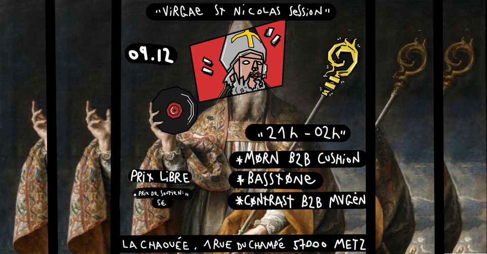 Virgae revient pour fêter la Saint Nicolas avec les sages (ou pas...?)On te donne RDV le samedi 09 Décembre pour un line up 100% composé d'artistes de l'association et un mélange de genres qui satisfera, on l'espère, le plus grand nombre de cette soirée!