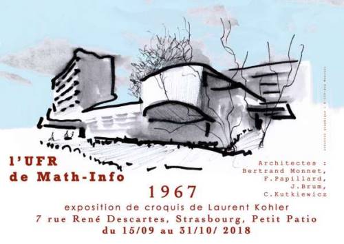 Exposition de 40 croquis de Laurent Kohler, de l’UFR de Math-Info, icône de l’architecture moderne du Campus universitaire de Strasbourg.
