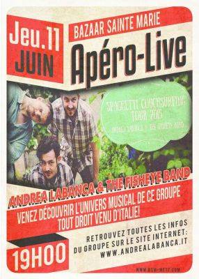 Le Jeudi 11 juin, l’auteur-compositeur italien Andrea Labanca et son groupe présentera un concert exceptionnel acoustique au BSM à partir de 19h30, (choisi par le site Couchsurfing).