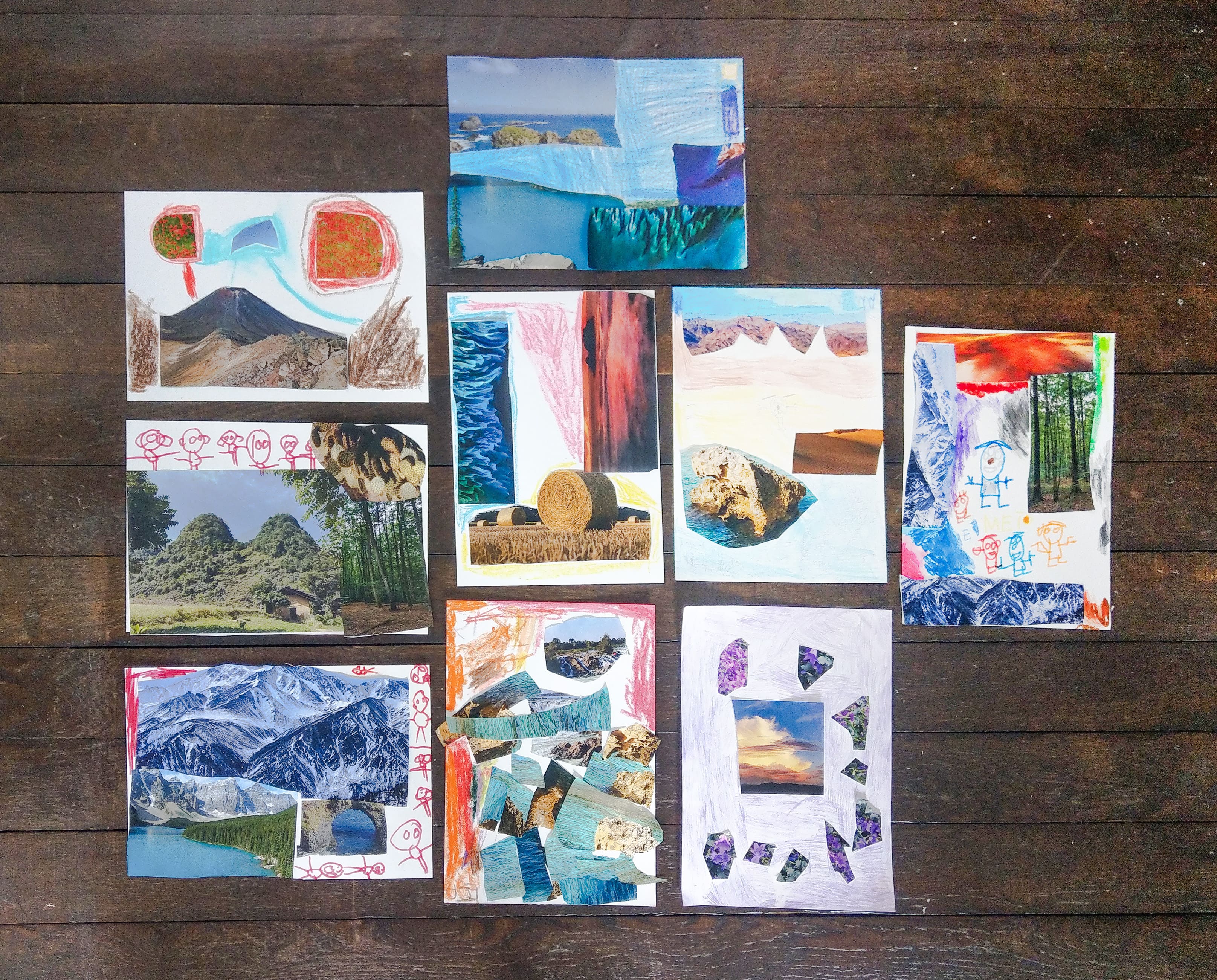 Dans sa série de collages Con beneficio della memoria, Luca Bertolo présente des paysages partiellement découpés et prolongés en peinture. Avec cet atelier « Trou de mémoire », créez vous aussi vos propres paysages imaginaires.