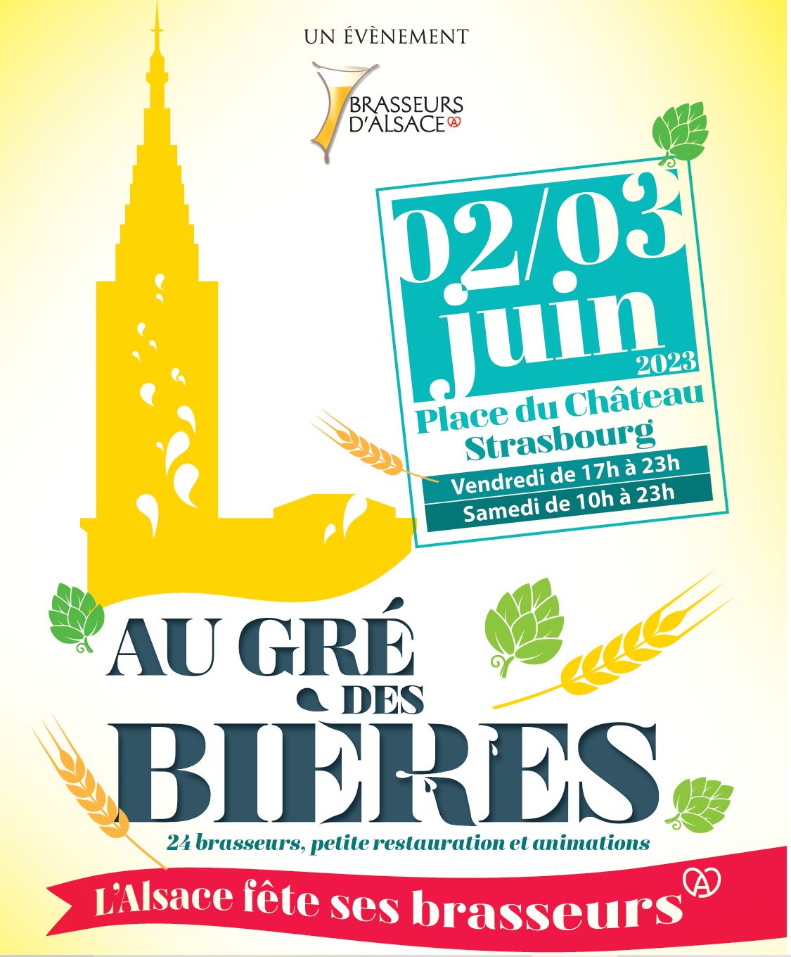 Brasseurs d'Alsace organise en partenariat avec la Corporation des Brasseries artisanales d'Alsace et l'ADT une nouvelle édition de l'événement Au gré des bières les 2 et 3 juin 2023 sur la place du Château à Strasbourg.