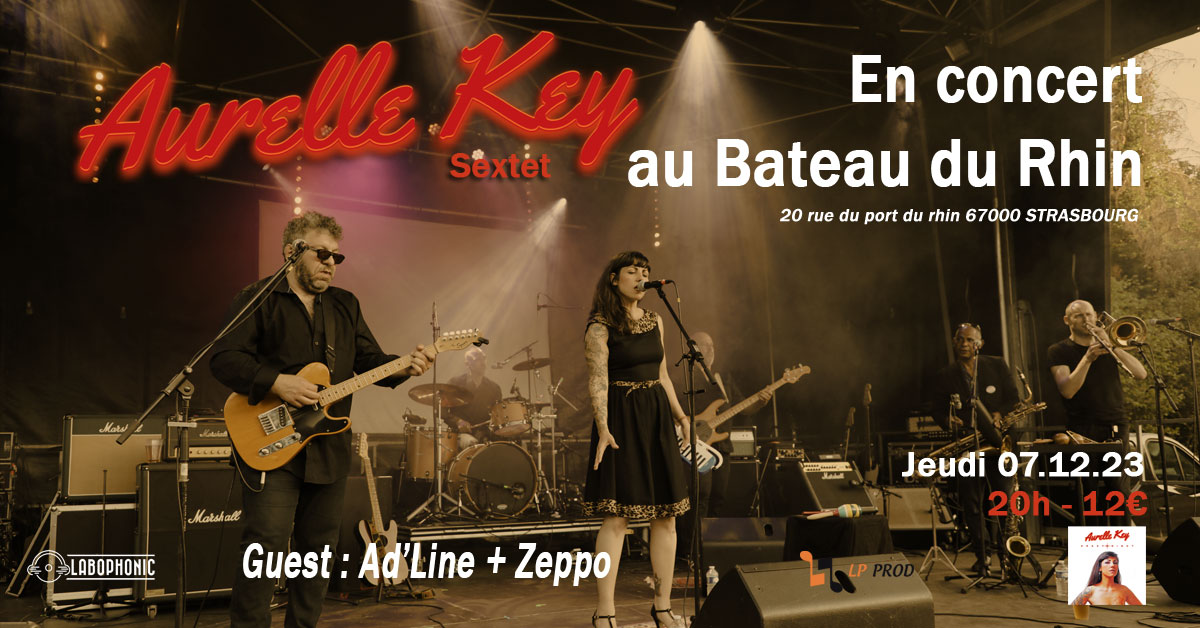Pour cette fin d'année le label Labophonic et l'association LP Prod vous proposent une soirée de fin d'année au Bateau du Rhin à Strasbourg. Découvrez ou redécouvrez l'univers soul blues explosif d'Aurelle Key accompagnée de ses cinq musiciens, une rare occasion d'entendre la chanteuse dans cette formation en sextet.