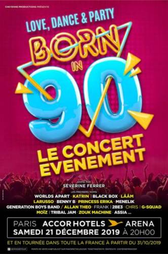 Produit par le producteur des tournées RFM Party 80, Génération Dance Machine, Stars 80, The Voice Tour, Danse avec les Stars, des comédies musicales Flashdance et Priscilla Folle du Désert …, BORN IN 90 sera le spectacle de toutes les démesures, avec les grandes stars de cette décennie, un ballet de 10 danseurs, des musiciens en Live, un son d’anthologie, un méga show de lumières, d’images et d’effets spéciaux.