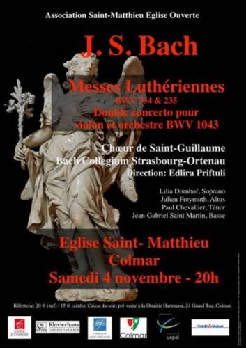Il sera interprété les 2 Messes brèves BWV 234 et 235, ainsi que le double concerto BWV 1043.