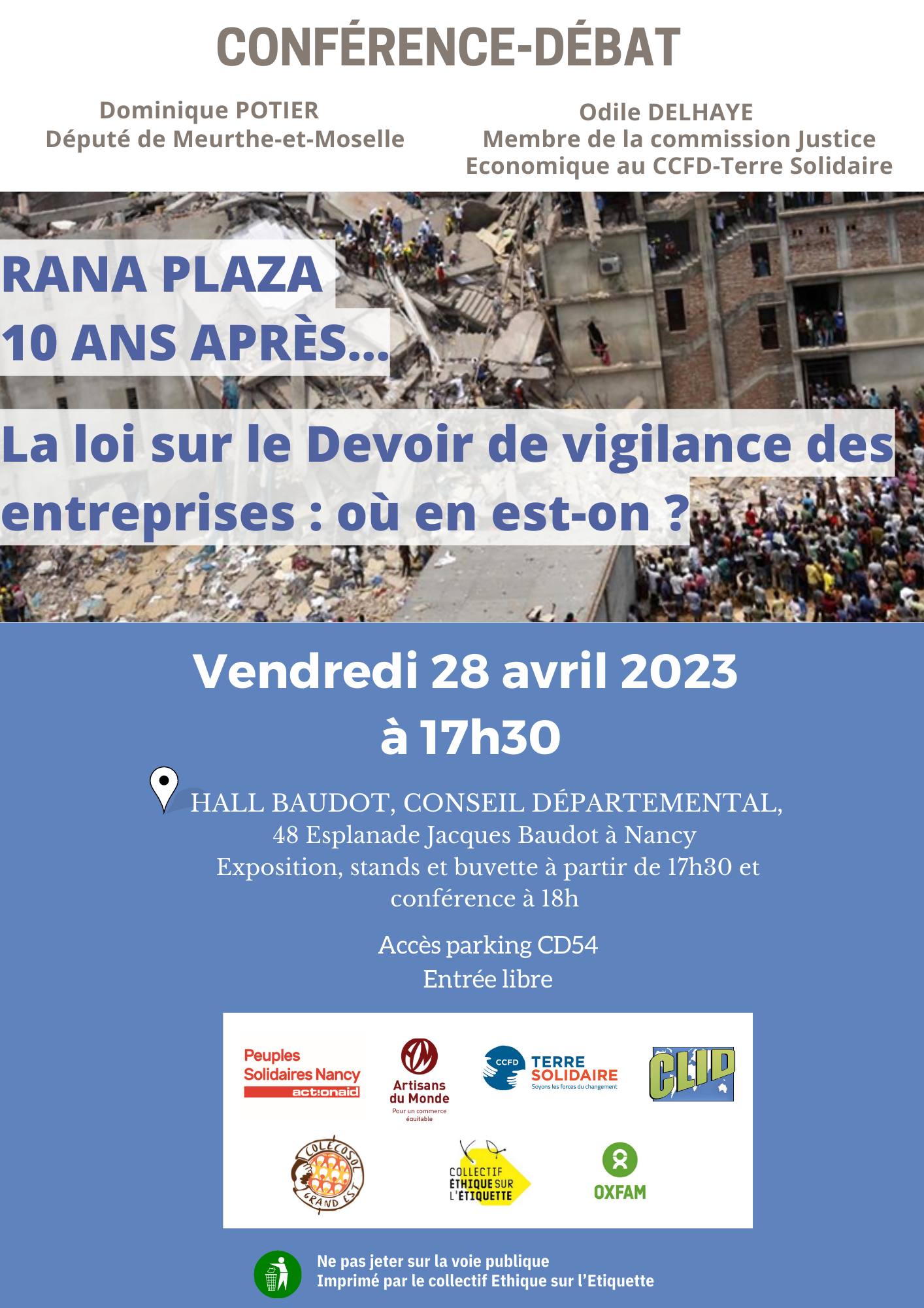Le collectif Ethique sur l’Etiquette d'Acteurs Nancéiens pour la solidarité internationale - AAF Peuples Solidaires Nancy, Artisans du Monde, Commerce équitable COLECOSOL Grand Est, CCFD Terre Solidaire, Centre Lorrain d'Information pour le Développement et Oxfam France - organise une conférence-débat