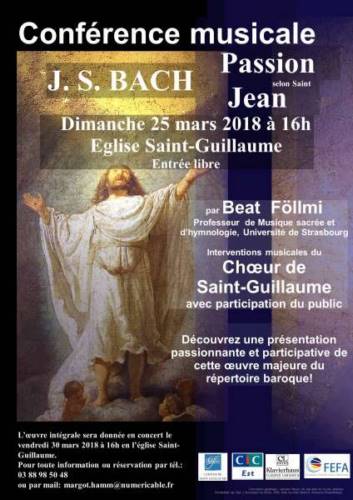 Afin de donner un éclairage musical approfondi de l’œuvre en amont du concert, une conférence de présentation musicale participative sera donnée par le Pr. Beat Föllmi de l’Université de Strasbourg le dimanche 25 mars 2018, à 16 heures, en l’église Saint-Guillaume.