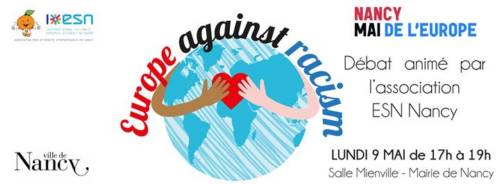 Dans le cadre de la semaine de l’Europe, l’association ESN Nancy, en partenariat avec la mairie de Nancy, vous propose de venir réfléchir ensemble sur le thème du racisme et des discriminations.