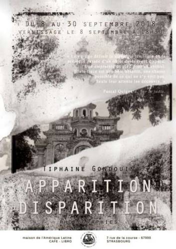 Je suis heureuse de vous inviter à mon exposition personnelle de photographies tirées de la série "Apparition - Disparition" à la Maison de l’Amérique Latine - Café Libro à Strasbourg.