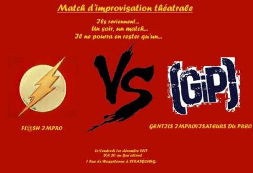 Le vendredi 1er décembre à 20h30, Le Bar’Atteint sera le théâtre d’un match improvisé ultime entre la bande de ’Fl@s# Impro’ et leurs copains du ’G.I.P.’ (Gentils Improvisateurs du PréO).