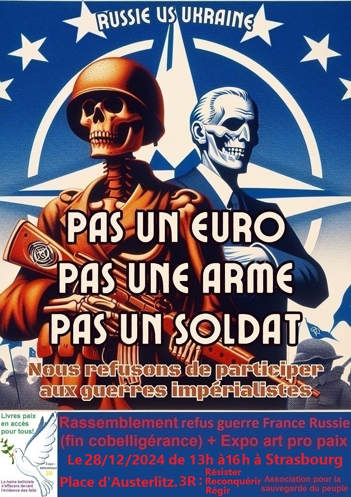 Nous étions le 14 décembre 2024 Place d’Austerlitz à Strasbourg. Il fallait répondre « Donald Trump » pour gagner un livre pro paix. Nous mettons en pose le traditionnel jeu « Qui a dit ? » une ineptie pro guerre. Nous n’avons plus de budget pour offrir un livre, mais juste de quoi distribuer des tracts.