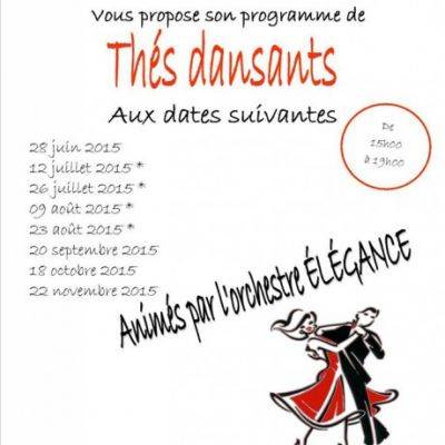 Voici le programme des prochains thés dansants pour 2015. Ils seront animés par l’orchestre Élégance.
